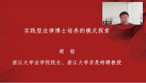 胡铭做了“实践型法律博士培养的模式探索”的主旨发言。他结合教指委工作和浙大实践,从目标、课程、教学、师资、评价、保障等方面进行了讨论。目标定位上,法律博士是法学领域最高学位专业人才。课程体系上,应注重模块实务交叉,体现学术实务结合,开展双师同堂,进行领域穿透性课程设置,重视方法工具性课程。授课方式需鼓励短课程、项目工作坊、训练营等。实践教学体系建设可参考浙大工程博士项目制培养,在实务部门建立工作站,采用导师组联合跨学科跨行业指导。评价机制上应综合考察案例开发、实践型成果包等,突出解决实践问题。保障方面,顶层设计,行业深度嵌入,众多资源投入,都需要协调保障,以促进共生共荣的生态。